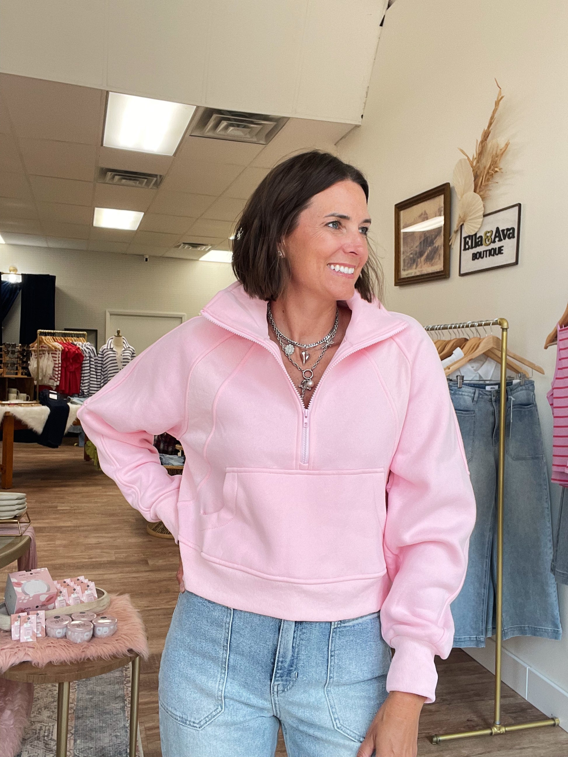 Pink Funnel Neck Half Zip